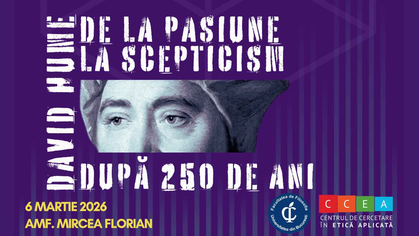 Conferința „De la pasiune la scepticism. David Hume, după 250 de ani”, organizată de Centrul de Cercetare în Etică Aplicată cu colaborarea celor două programe masterale dedicate specializării filosofie morală și politică (Etică aplicată în societate, afaceri și organizații și Philosophy, Politics, and Economics), marchează împlinirea a două secole și jumătate de la moartea celui mai cunoscut reprezentant al Iluminismului scoțian. Conferința se va desfășura la Facultatea de Filosofie, amfiteatrul Mircea Florian, pe 6 martie 2026, începând cu ora 10:00.